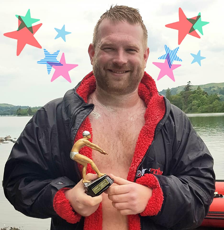 No stranger to putting a shift in, a 2 Way Coniston was a perfect warm up for his longer swims planned later this year. David powered literally down the Lake and finished his 1 way in 2 hours and 7 minutes. He is a smiley head down, no messing kind of swimmer.